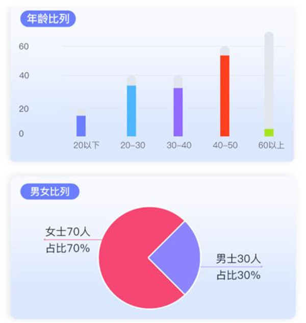 獲悉門店客流只是基本操作,知道門店的主要消費(fèi)群體才是后續(xù)營銷的重點(diǎn)。因而在人流統(tǒng)計(jì)的基礎(chǔ)上,系統(tǒng)還會進(jìn)一步識別顧客性別、年齡段、來訪量等不同屬性,通過多角度的圖表呈現(xiàn),門店的消費(fèi)者畫像即清晰可見。根據(jù)目標(biāo)客群,運(yùn)營者就能合理調(diào)整營銷思路,比如,當(dāng)門店的消費(fèi)群體主要為男性時(shí),就可有針對性地優(yōu)化商品結(jié)構(gòu),更好迎合受眾需求。